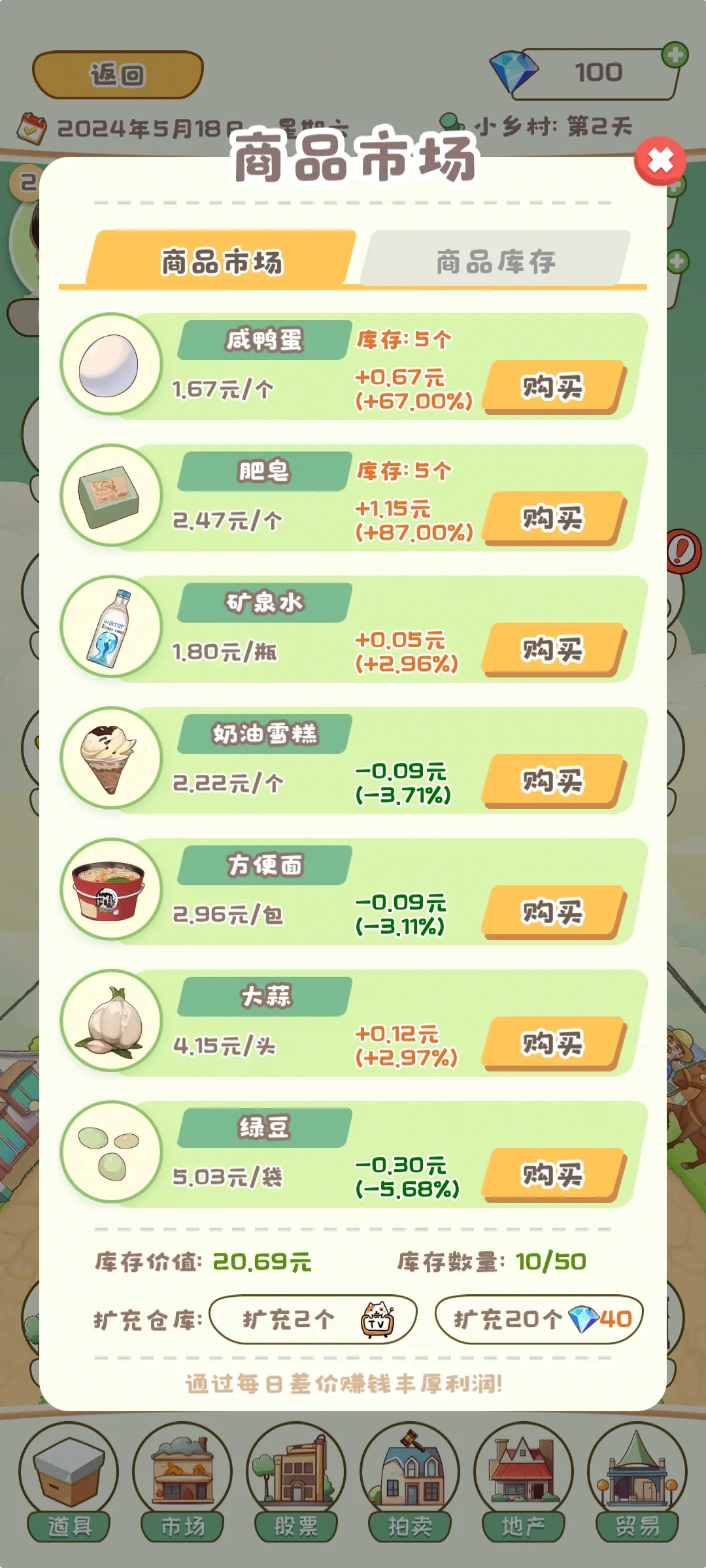 3、在股市中玩家需要根据情况合理的进行投资,抓住机会去赚取巨额的财富。