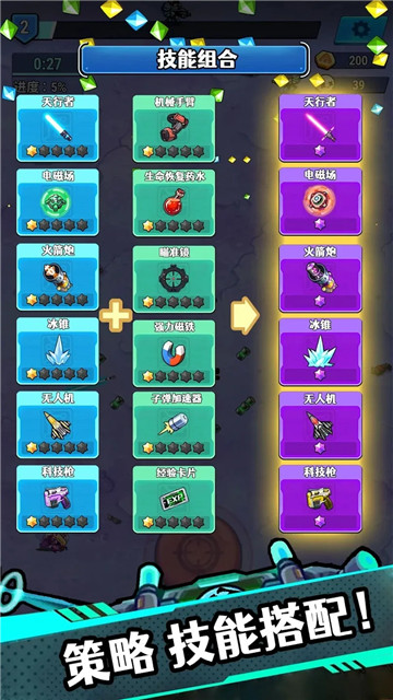 3、收集不同类型的英雄,获取不同的技能,制定出最强大的队伍。