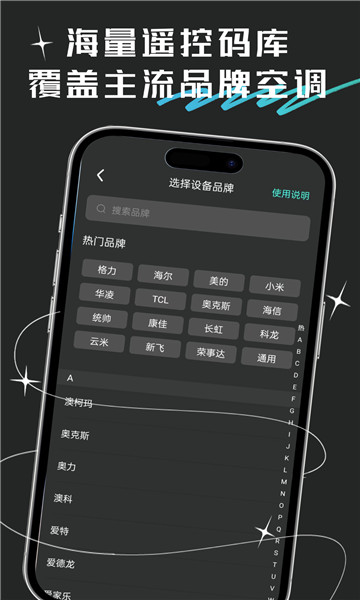 下载万向空调遥控器可以很好的兼容各大品牌的遥控,让用户可以轻松的进行操控。支持各种类型的家电,兼容性非常的强,用户可以享受这里更多的功能和便利,就算找不到设备的遥控器也不用担心了,你的手机就变成非常好的工具了。
