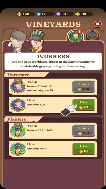 2、可以解锁多种葡萄种类,通过探险和采集,可以获得全新的果子。