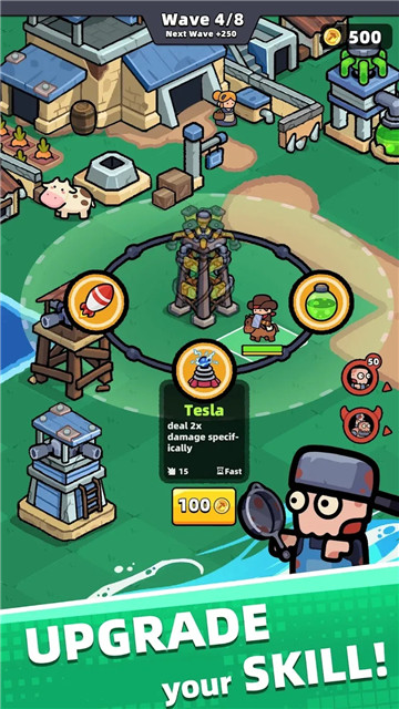 4、非常经典的放置塔防游戏,在地图上放上各种防御塔,与僵尸进行作战。