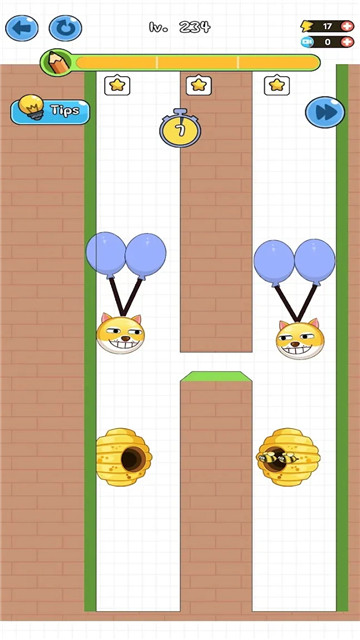 3、玩家可以灵活地划出一条直线,保护这个狗头的安全。