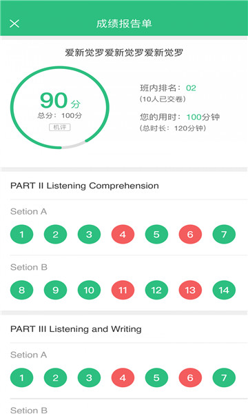 2、考完以后还能进行汇总,查看班级其他学生的情况。