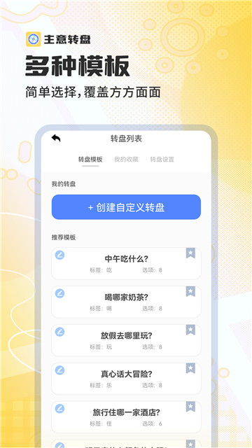 3、通过简单的转盘形式,让你可以迅速做出决定,非常的具有创造性。