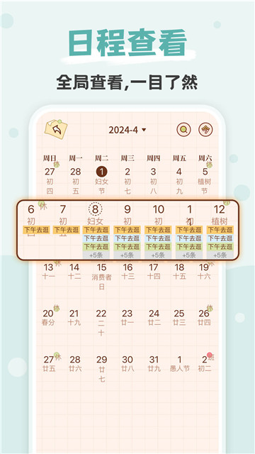 4、所有日程显示非常的详细,按照时间进行排布,方便查找。