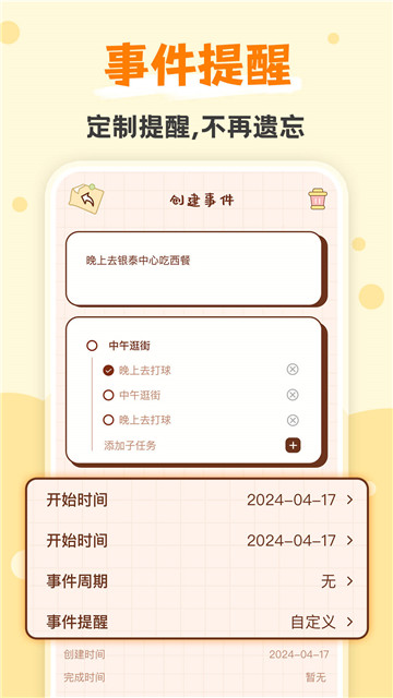 3、为事情提供一个时间提醒,让你不会遗漏待办事项。