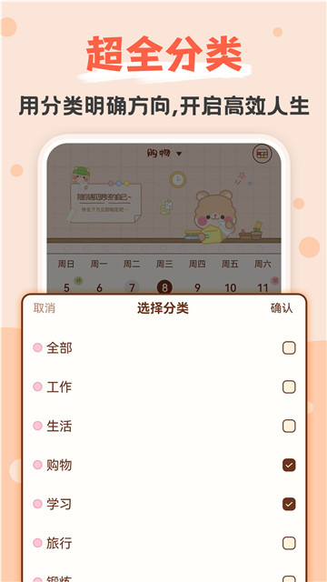 1、按照非常科学的方式进行任务的分类,可以查看你的打卡情况。