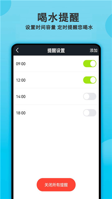 3、每天准时进行喝水的提醒,帮助你养成良好的习惯。