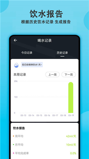 下载1、可以非常准确的记录下来你每日的饮水含量,方便后续进行查看。
