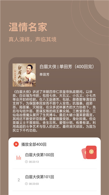 2、拥有众多独家策划的音频节目,如名人访谈、精品课程、儿童教育等。
