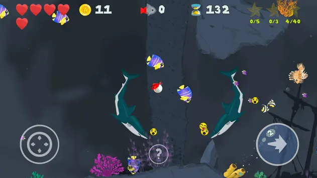 2、寻找同种族鱼类以保障生存安全,生动细腻的海底环境,带来身临其境的感觉。