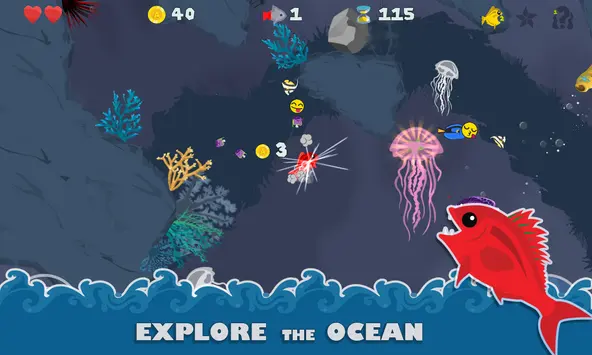 2、在各种地图中冒险,寻找食物以满足小红鱼的成长需求。