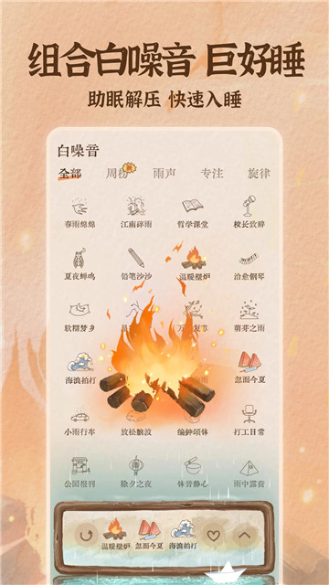 2、具有非常多种白噪音和自然的声音,可以帮助你更加快速的入眠。