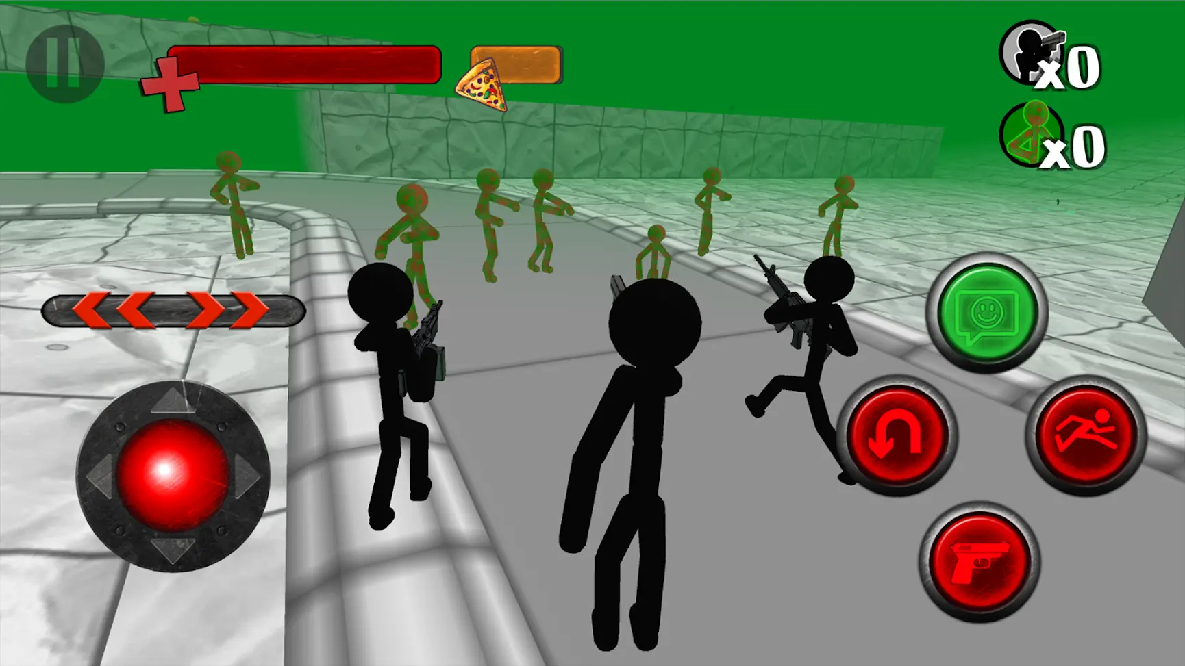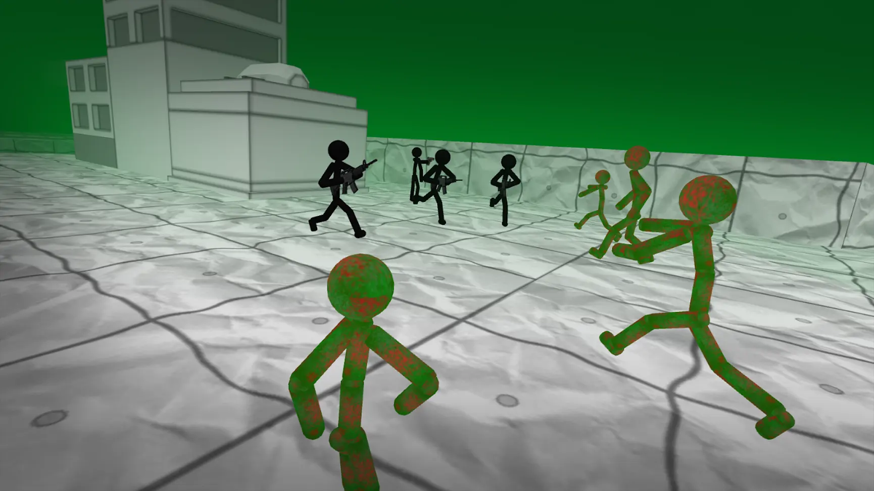 下载1、玩家将扮演一名英勇的火柴人战士,在末日后的3D世界中与成群的僵尸进行激战。