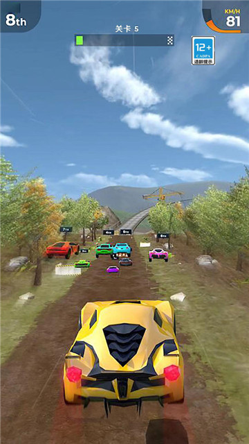 2、玩家将驾驶着各种各样的车行驶在公路上,去争夺第一名。
