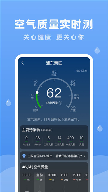 2、即时准确地显示当天的天气情况,包括气温,湿度等等。