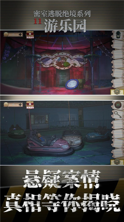 下载密室逃脱绝境系列11游乐园下载是悬疑氛围浓厚的解谜冒险游戏,讲述主角在废弃游乐园中寻找失踪亲人的故事。玩家需在阴森诡异的环境中探索线索,破解机关谜题,层层推进剧情发展。游戏融合恐怖气氛与脑力挑战,搭配精美画面与环环相扣的设定,带来沉浸感极强的解谜体验。喜欢惊悚故事与烧脑谜题的你,赶快下载安装密室逃脱绝境系列11游乐园最新版,解开游乐园背后的黑暗秘密吧!