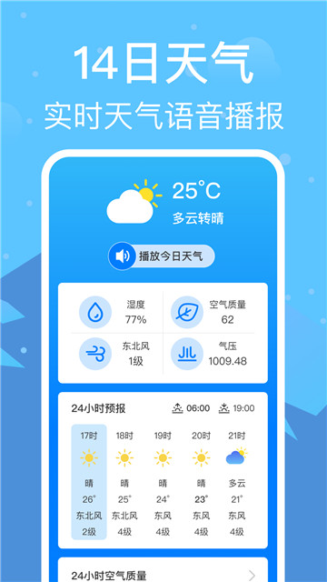 1、具有语音天气播报功能,让您可以随时了解天气状况。