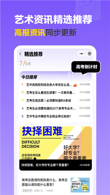 4、包含大量艺考信息,为艺术类考生备考助力,使学生在报考过程中更有针对性。