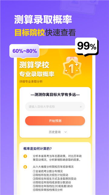 3、通过分数精确地估算出被录取学校的可能性,让考生提前做好各种准备。