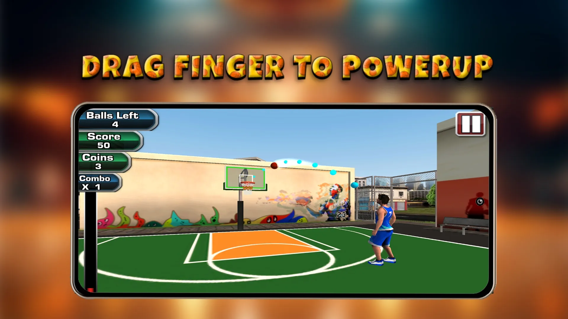 1、通过投篮得分超越对,玩家可以通过滑动和点击屏幕进行运球、瞄准、投篮等动作,执行特殊的篮球技巧。