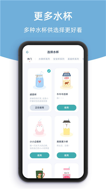 2、具有多种不同的皮肤可以选择,带给你更加有趣的喝水体验。
