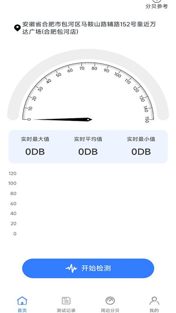 1、界面非常的清晰简洁,只需一键操作,即就可以了解到附近的噪音情况。
