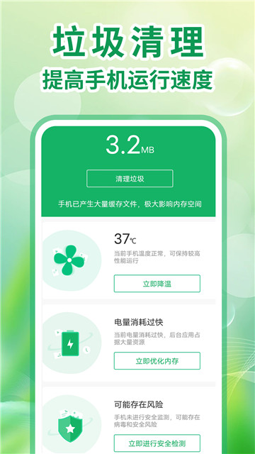 1、帮助你对手机的无用文件进行清除,让你的手机更加的流畅。