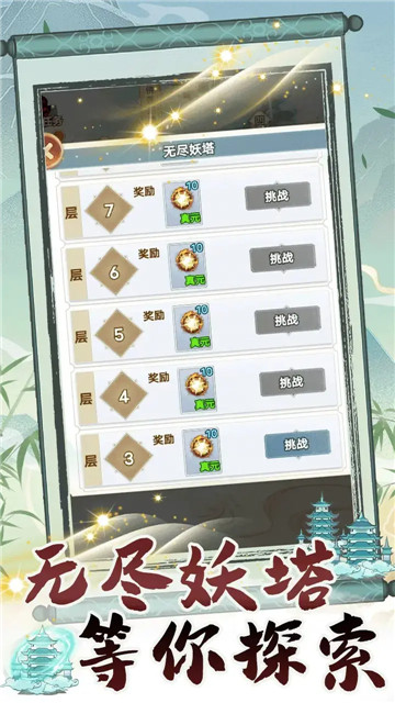 3、通过探索妖塔可以获得各种不同的真元,提升战斗能力。