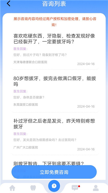 下载1、可以进行在线咨询的功能,非常专业的牙科专家为你在线进行答疑。