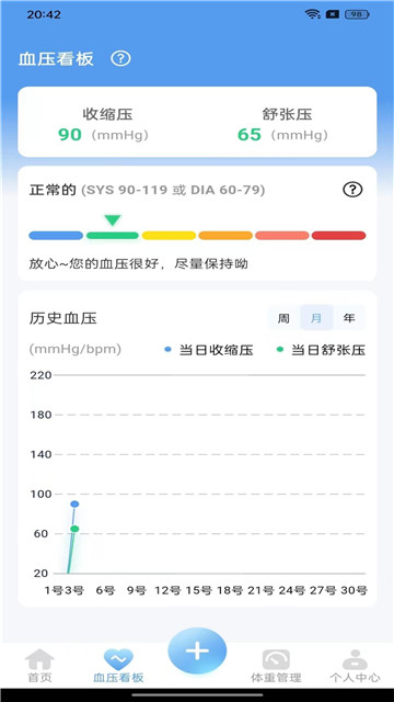 2、可以和智能的血压计一起进行使用,准确监控你的血压值。