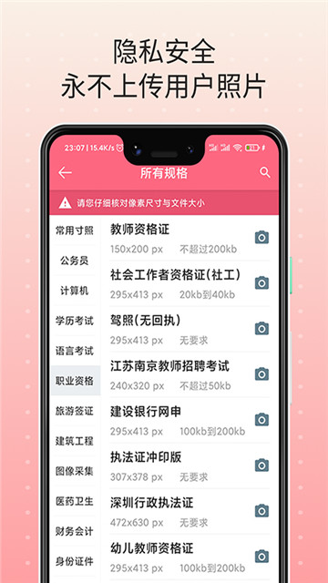 2、让你可以根据证件的类型选择不同的照片,很容易进行使用。