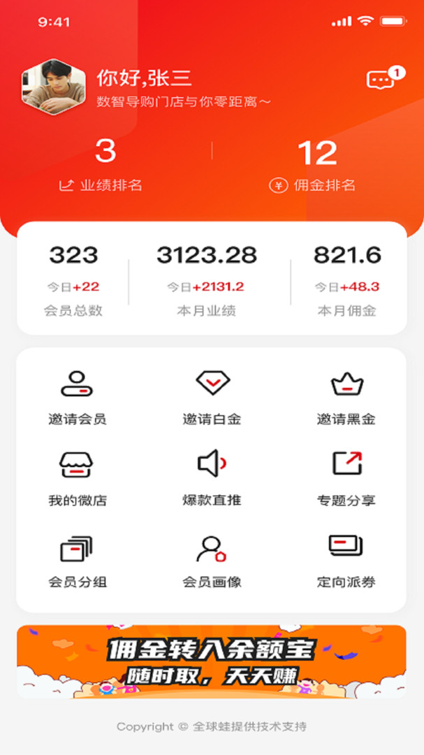 1、即时性的可视化显示提成收入,笔笔交易即时到账,,让您的收入倍增。