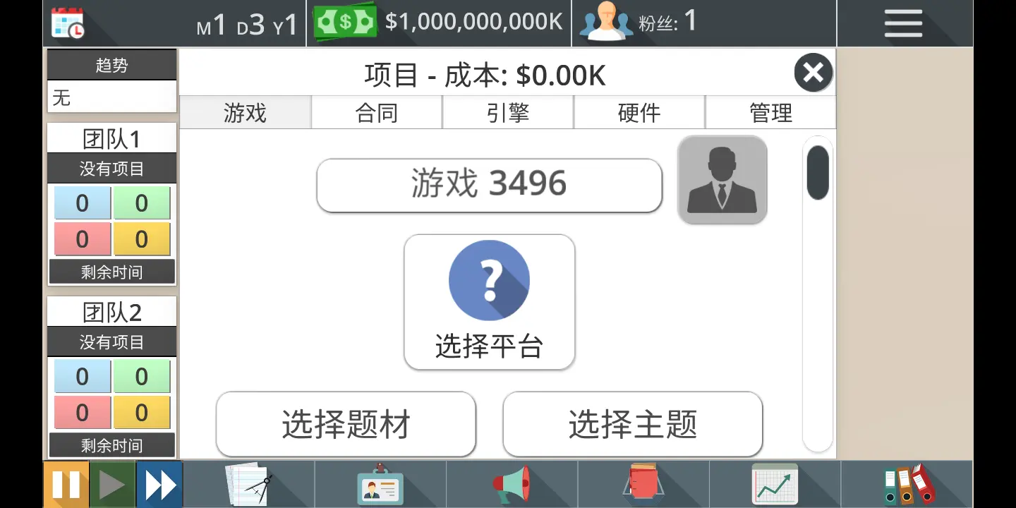 3、玩家可以选择开发多种类型的游戏,从动作冒险到角色扮演,每种类型都有其独特的市场需求和开发挑战。
