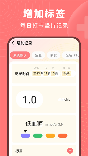 2、你可以进行添加血糖的数据,更好的管理自己的健康。