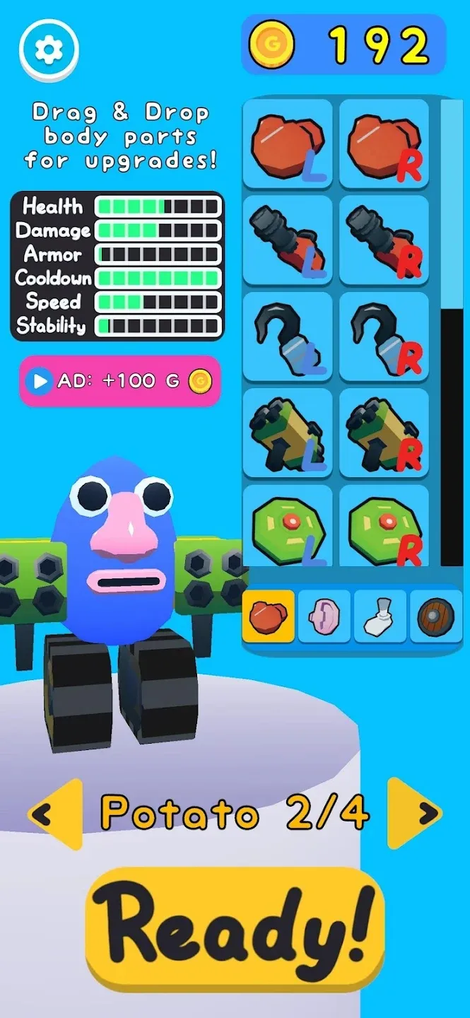 2. 玩家将扮演一颗土豆,在擂台上与其他对手展开激烈较量。