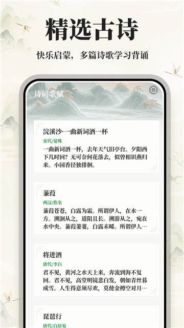 2、为用户带来丰厚的古典诗词素材,领略到古人的智慧与风采。