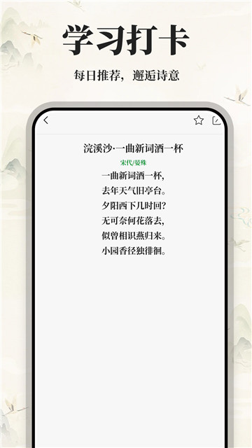 2、根据你的阅读习惯,每日为你推荐最新的内容,增加你对诗词的兴趣。