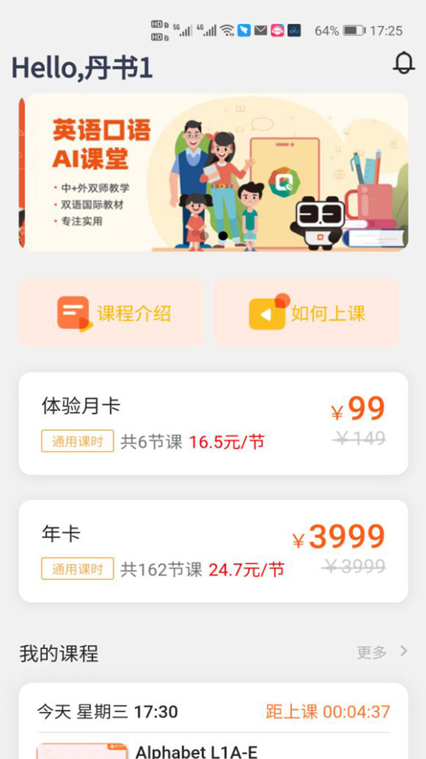 2、智能英语课程,选择喜欢的开始学习。