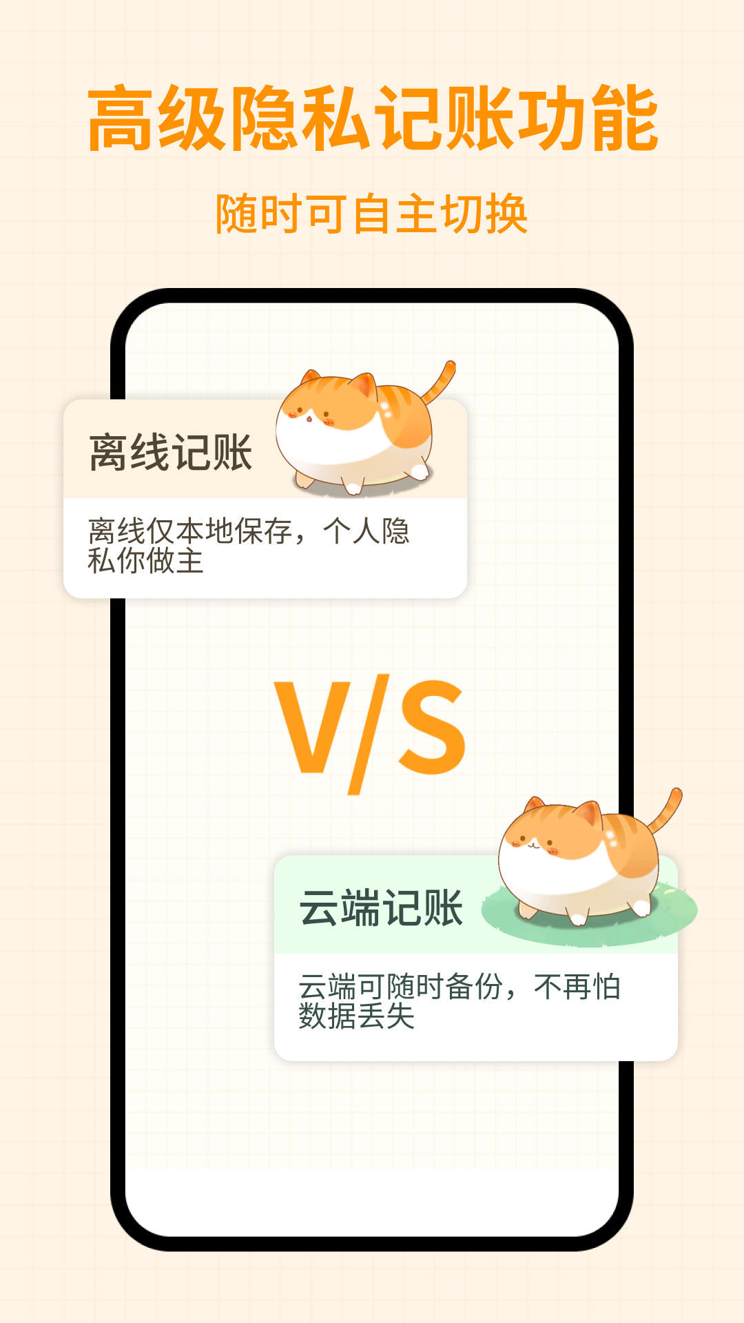 2、云端记账:您的数据我们帮您加密保存,您的记账数据(如记账、资产、账本)均云端保存;