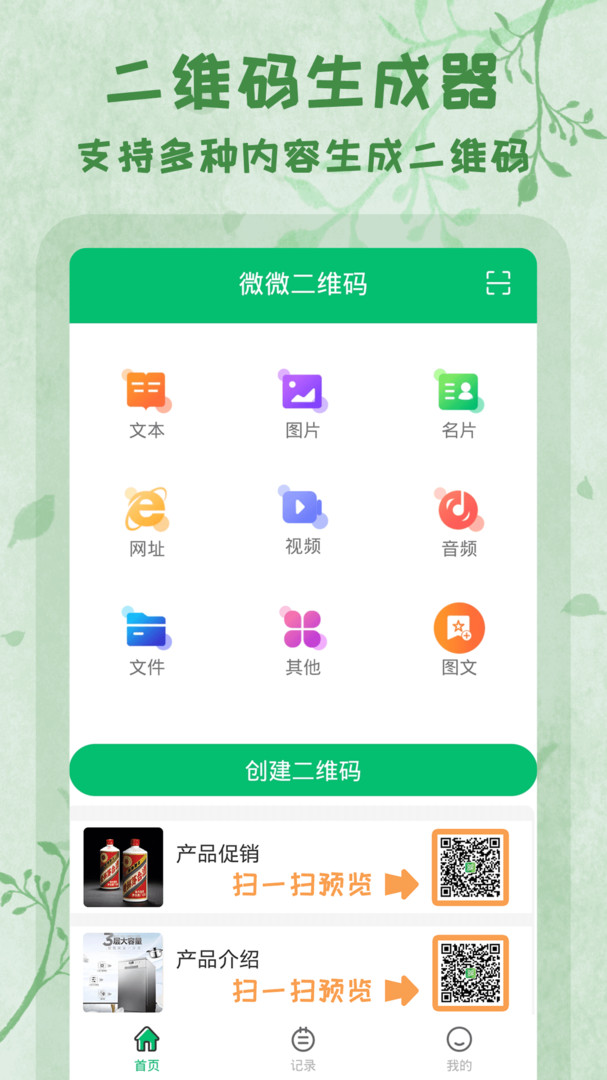 二维码生成器能力强大,二维码扫描可生成文本、名片、网址、WIFI等二维码。