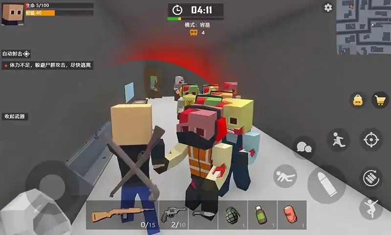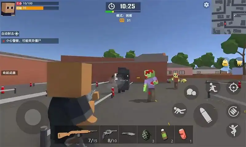 3. 场景内分布着各种类型的僵尸,玩家可根据它们的弱点选择相应的武器进行战斗。