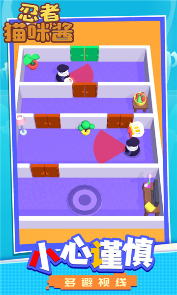 3、顺利完成挑战后就能解锁全新的场景,注意躲避npc的视线,在完美躲避的同时快速的跑出门。
