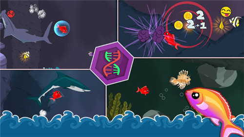3、你必须收集海星才能解锁关卡,每个关卡都有3个海星等你收集。收集海星,一路大吃特吃,直到食物链的顶端。