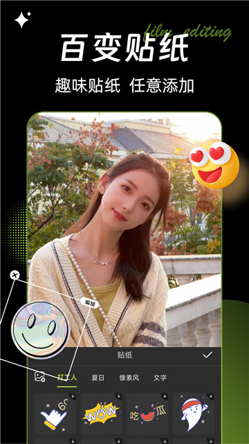 1、多种有趣的贴纸随意进行放置,给你的视频添加更多的乐趣。