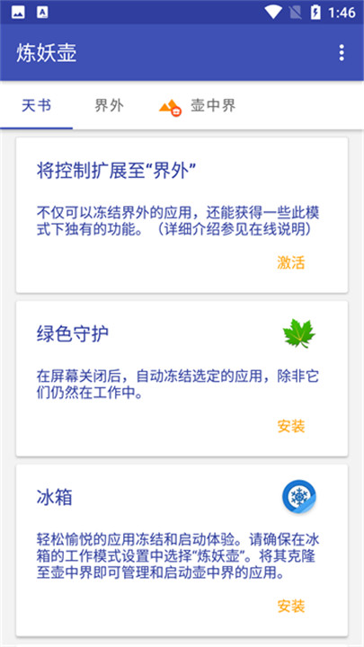 7、还有一个方式是将“工作空间”中的部分应用冻结,这需要安装冰箱将其克隆到炼妖壶中,打开激活运行模式,直接冻结应用。
