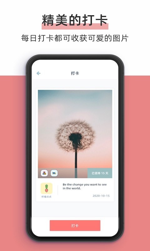 3、软件中每天都会提供精美的打卡界面,还有众多可爱的图标放松心情。
