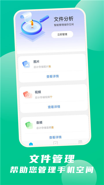4、可以智能快速的帮助你管理手机中的空间,让你可以进行文件的分析。