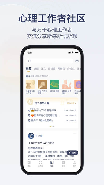 2、打造专业的心理工作者社区,与其他用户在线分享经验感悟。