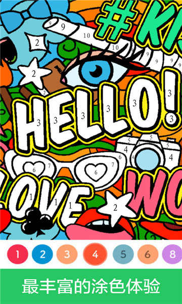 1、游戏中玩家只需要按照预定的数字为各部分涂色,种类繁多的画作任你选择。